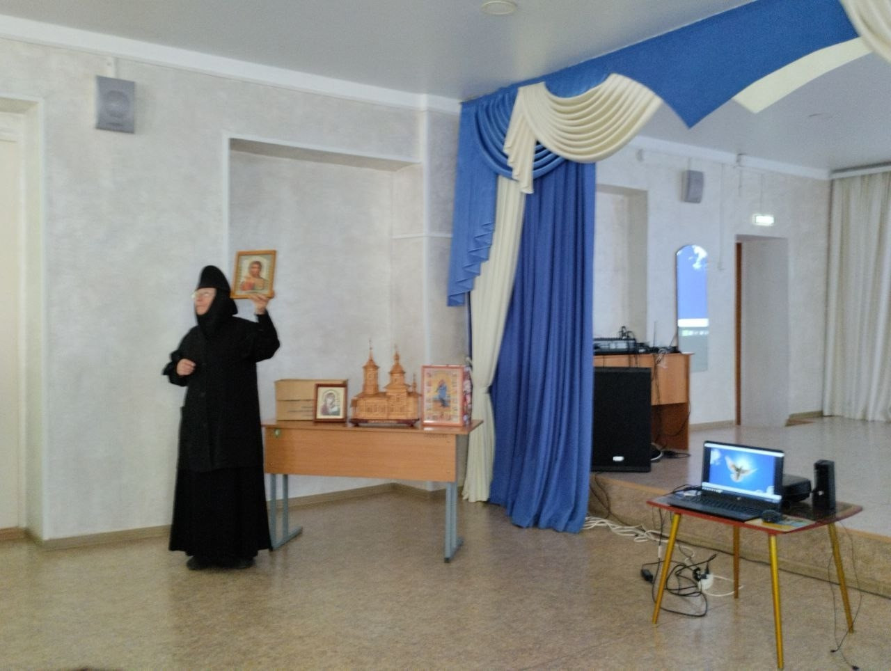 Матушка показала ребятам в Государственном бюджетном стационарном учреждении социального обслуживания "Социально-реабилитационный центр для несовершеннолетних "Надежда" Забайкальского края фотографии о жизни монастыря, рассказала об иконах Господа и Божией Матери, русских святых, перед которыми возносятся молитвы в храме обители. Официальное сообщество Государственного бюджетного стационарного учреждения социального обслуживания "Социально-реабилитационный центр для несовершеннолетних "Надежда" Забайкальского края