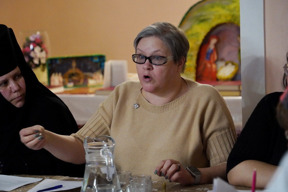 В заключение встречи педагог Реабилитационного центра для детей и подростков «Спасатель» Е.О. Манукян рассказала об успешном опыте сотрудничества учреждения с нашим женским монастырем.