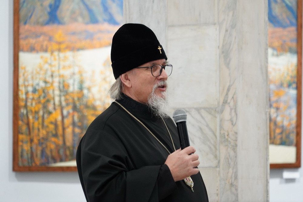 Владыка Димитрий, о. Алипий и инокиня Феоктиста посетили открытие выставки.