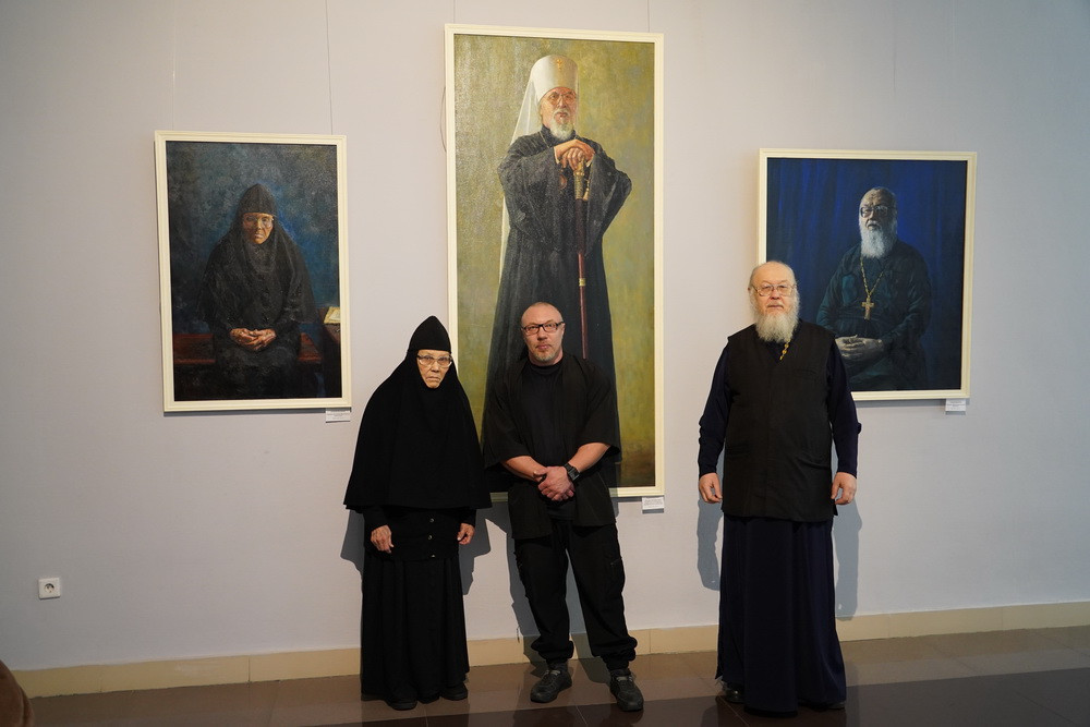 В экспозиции представлено более 70 произведений, среди которых портреты митрополита Читинского и Петровск-Забайкальского Димитрия, иеромонаха Алипия (Федотова) и инокини Феоктисты (Абрамовой), написанные художником Андреем Максимовым.