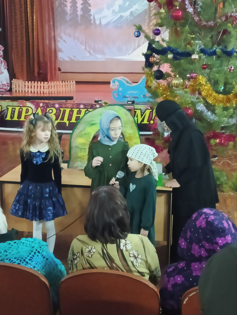 История праздника Рождества прозвучала в песнопениях и стихотворениях. Перед бабушками и дедушками предстали волхвы, несущие дары в Вифлеем. Украшением праздника стал передвижной вертеп, сделанный в обители, учащимися воскресной школы.