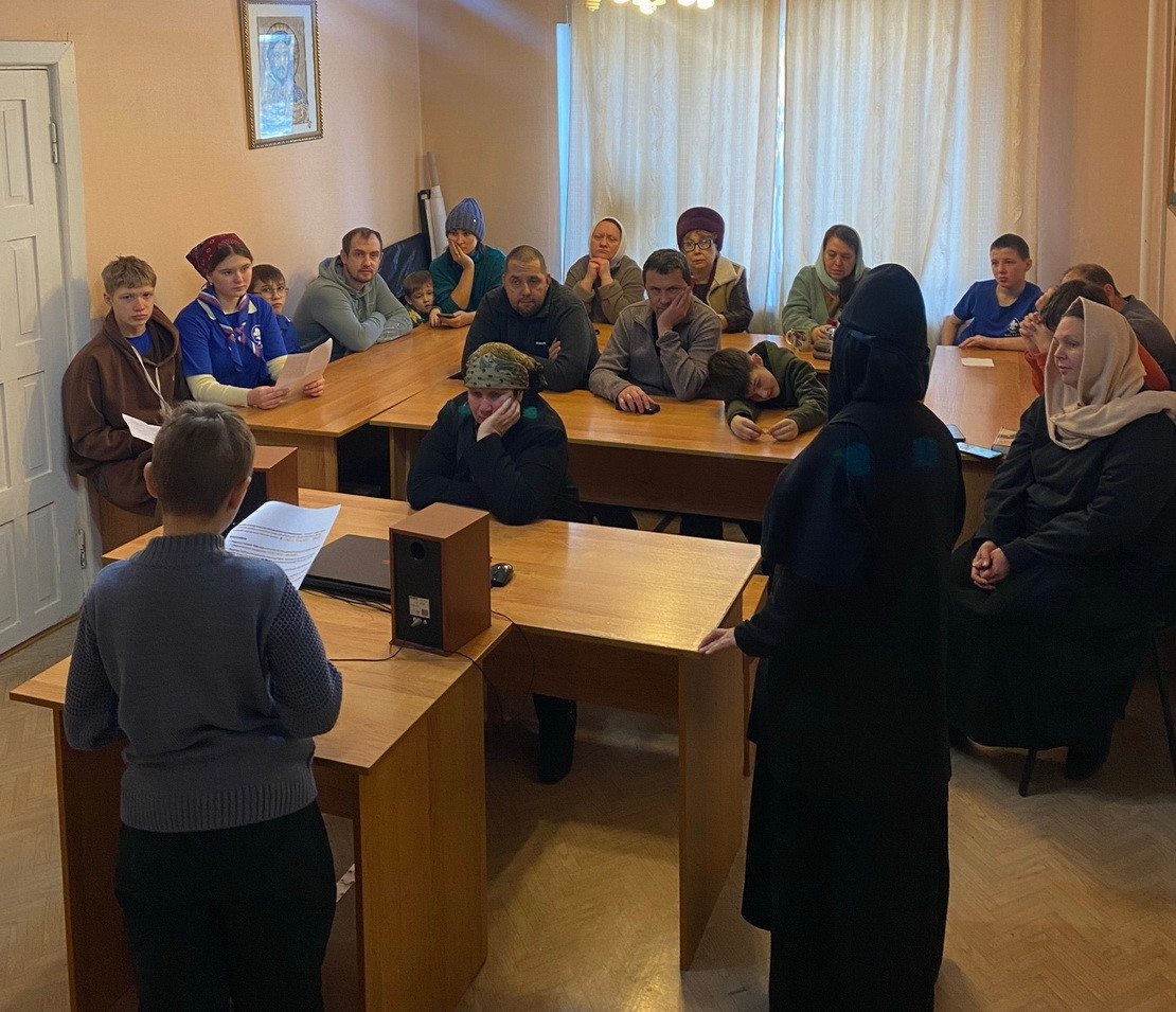 Ребята выступили с сообщениями о новомучениках и исповедниках перед слушателями воскресной школы монастыря.
